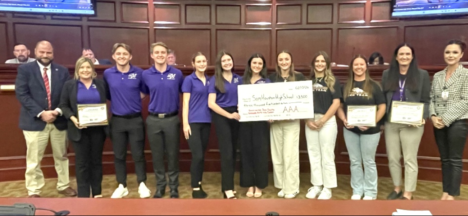 At a school board meeting in Calcasieu Parish, Amber Ashworth, Destination Zero Deaths Southwest Region Coordinator, presented the students from the Student Council at Sam Houston High School with their $3,500 award! These students earned 2nd place for their outstanding entry in the "Buckle Up, Phone Down" High School Video and Pledge Contest. Congratulations again to these students for their creativity, effort, and powerful messaging in their video!